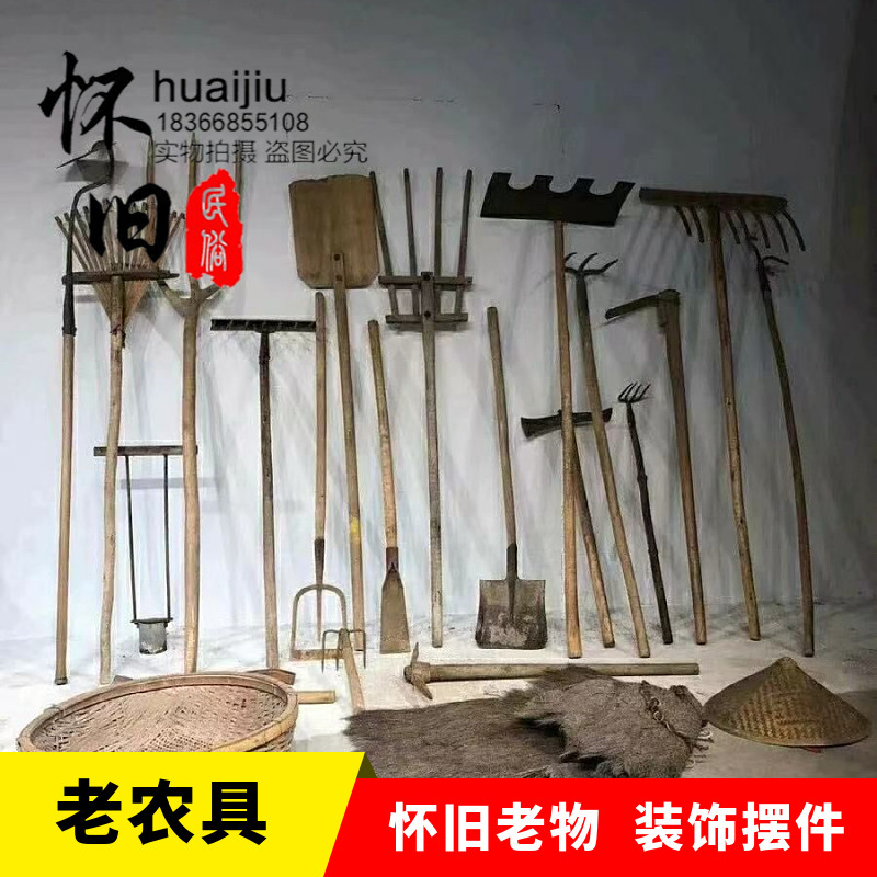 怀旧民俗老物件老农具木犁锄头镰刀连枷木桶木盆农耕文化展示摆件热门设计联盟服务商