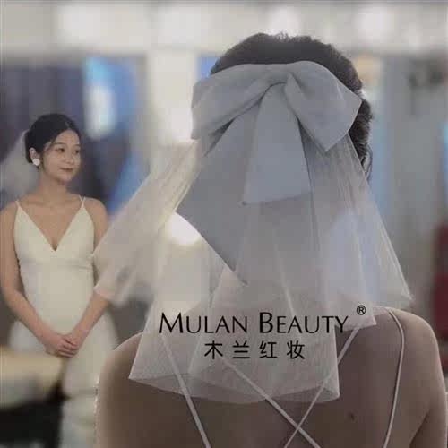 领证头纱新娘超仙双层短款w缎布蝴蝶结摄影新娘婚纱头饰拍照道具热门设计联盟服务商