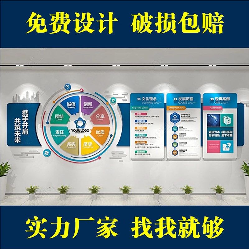 定制金色a亚克力企业文化墙公司立体墙贴会议室3D背景墙办公室装热门设计联盟服务商
