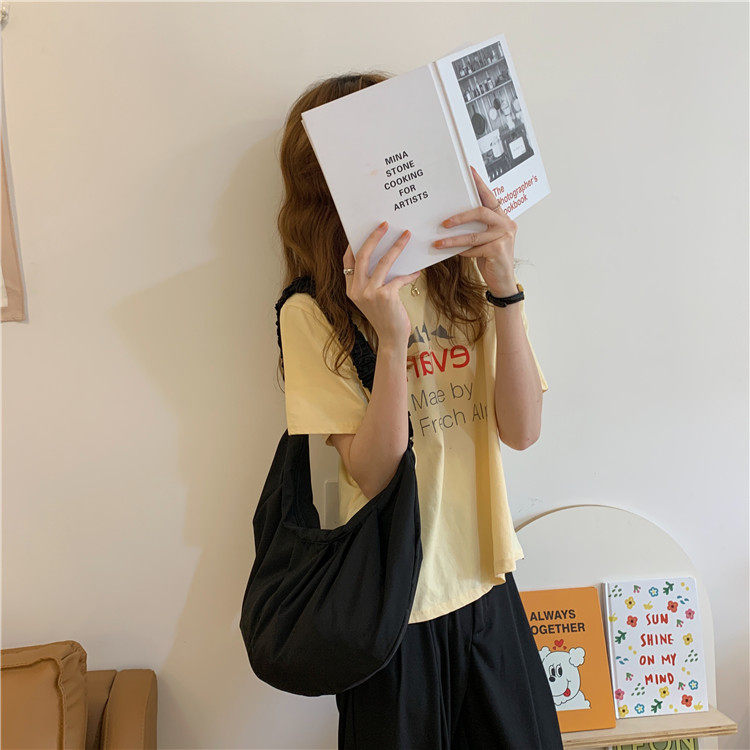 日系包包小众设计2021春夏清新皱褶帆布包大容量饺子包女学生布袋热门设计联盟服务商