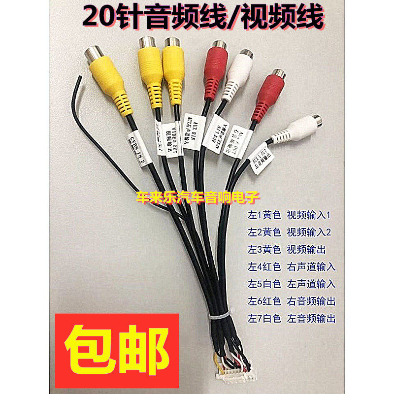 车载导航改装20针音视频线安卓屏接记录仪低音炮头枕屏RCA转换线热门设计联盟服务商
