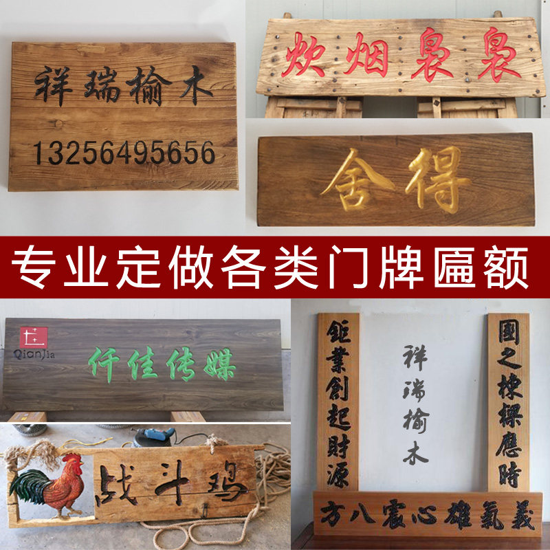 牌匾定做 实木老榆木招牌匾 门头木雕对联广告牌风化老缅刻字热门设计联盟服务商