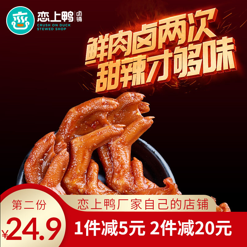 恋上鸭甜辣鸭掌500g鸭爪卤味学生网红零食大礼包真空独立小包装热门设计联盟服务商