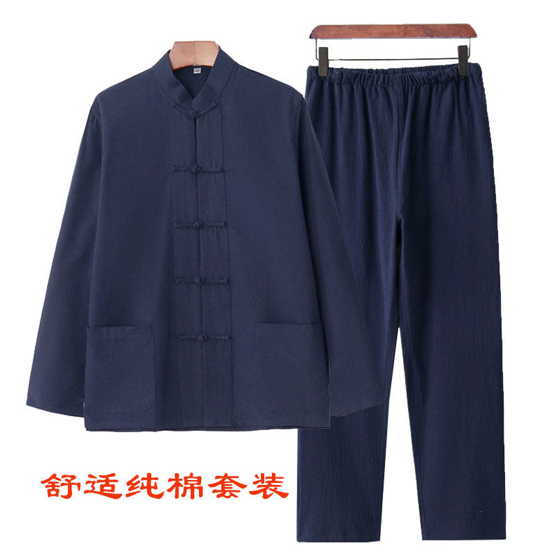 纯棉老粗布男士中式唐装套装上衣裤子两件套长袖中国风中老年汉服热门设计联盟服务商