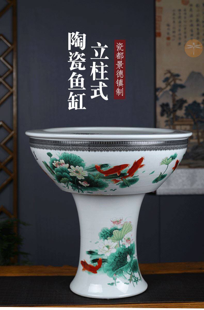 景德镇陶瓷盆落地立柱式鱼缸特大号金鱼荷花缸大水缸锦鲤风水室外热门设计联盟服务商