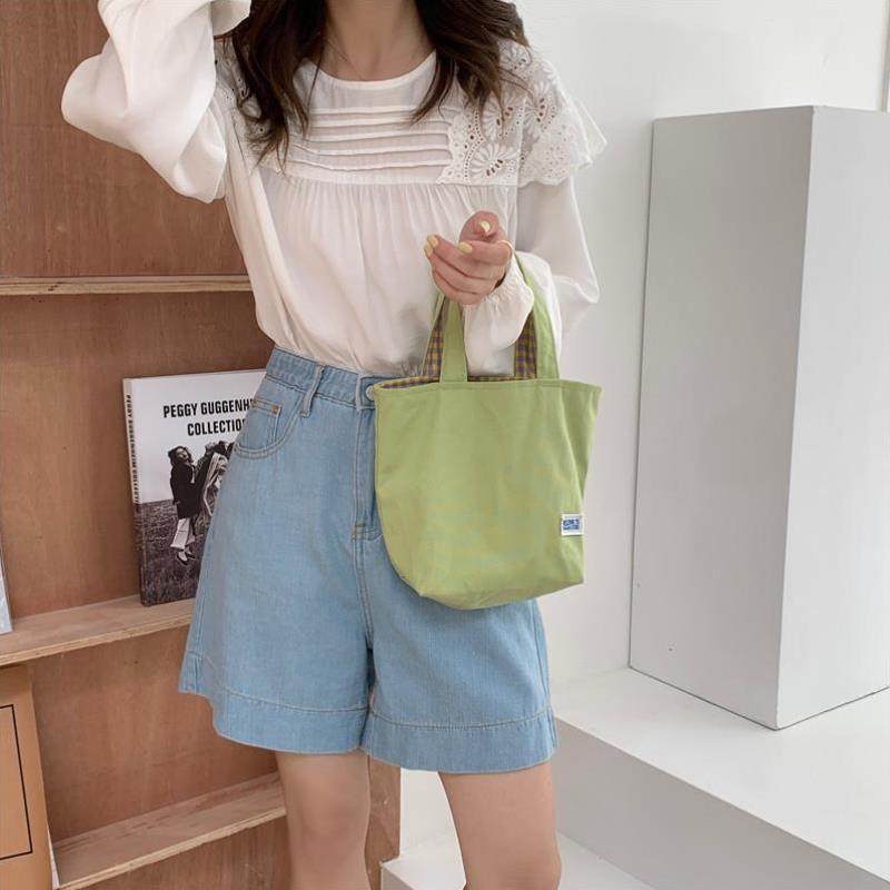 小白兔几手提帆布袋设计感日系清新简约手拎小布包双面格子便当包热门设计联盟服务商