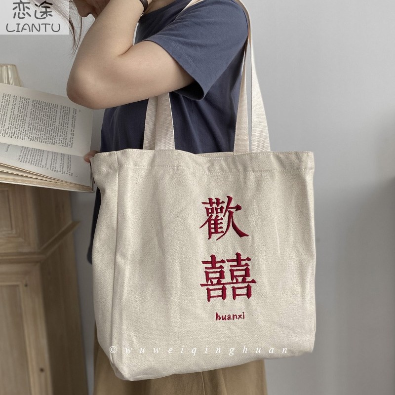 文艺布袋帆布包 常有刺绣 手提慵懒生活单肩包 日式欢喜热门设计联盟服务商