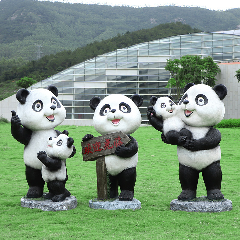 户外仿真熊猫雕塑幼儿园林景观公园草坪装饰玻璃钢动物落地大摆件